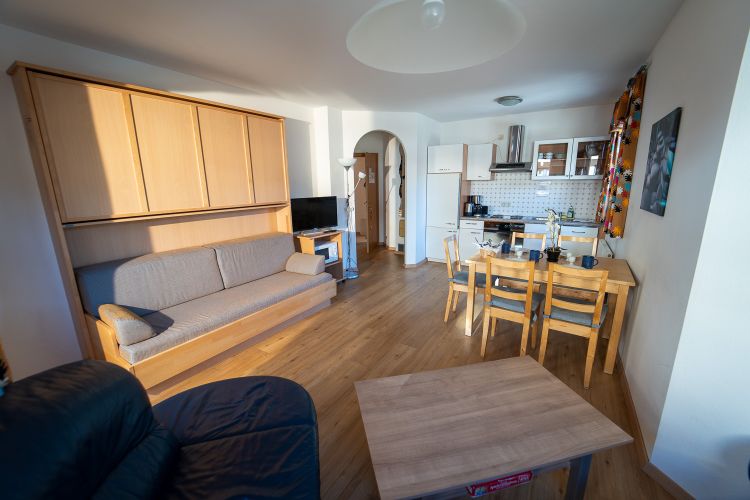 - Vorraum, Bad mit WC (Fön vorhanden), Schlafzimmer mit Stockbett, Wohnküche mit Flexino-Bett/Couch-System (Infolink Flexino s. Startseite)