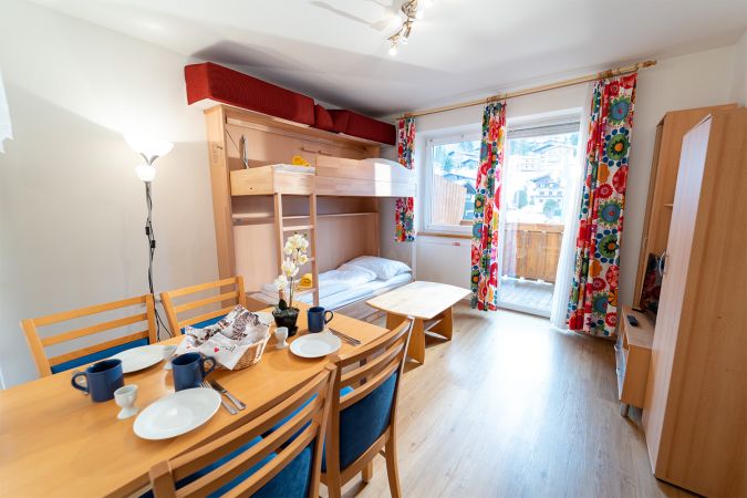 - Doppelbett (180x200cm) im Schlafzimmer + Flexinno Stockbett in der Wohnküche (2x 90x200cm)