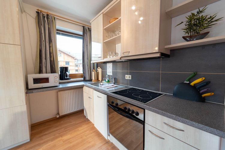 - voll ausgestattete Küche mit 4 Cerankochfeldern, Backrohr, Kühlschrank, Geschirrspüler sowie Kaffeemaschine, Wasserkocher und Toaster