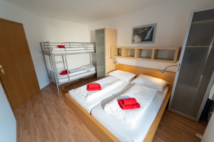 - Doppelbett (180x200cm) und Stockbett im Schlafzimmer (2x 90x200cm) + Flexinno Stockbett in der Wohnküche (2x 90x200cm)
